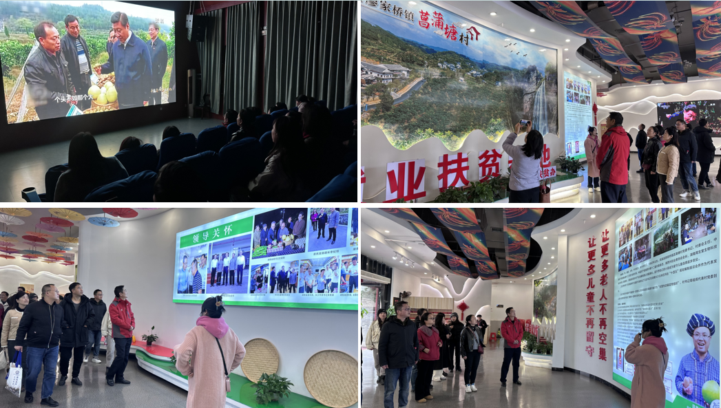 活动前期,党支部周密筹备,提前与菖蒲塘村党组织负责人联系,对接参观路线、讲解服务及活动场地等具体事宜。当天13时,全体党员集合完毕,党支部负责人强调了行程安全、纪律要求及活动流程,随后,党员们统一乘坐大巴前往目的地。抵达菖蒲塘村后,村党支部负责同志热情迎接,安排向导全程带队讲解。党员们循着“总书记考察足迹”路线参观特色产业示范基地,观看乡村振兴专题宣传片,走访村电商服务中心与乡村振兴展览馆,深入了解该村在村容村貌提升、便民服务设施完善及以党建引领基层治理等方面的实践经验,实地感受乡村振兴所取得的丰硕成果。