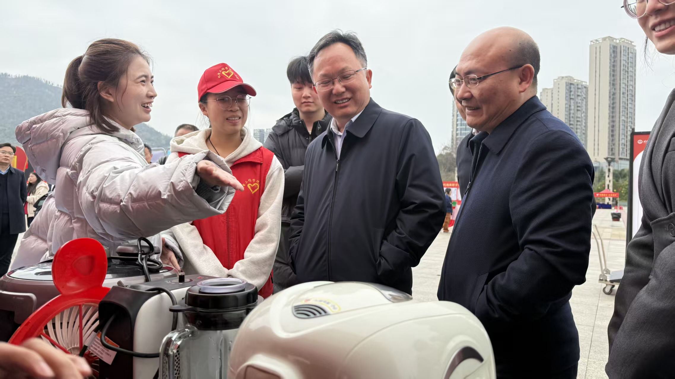活动期间,州委常委、州委政法委书记彭延敏等领导一行来到学院服务展台视察指导。志愿者代表向领导详细介绍了本次志愿服务开展情况、专业特色项目及队伍建设成效。彭延敏对机电工程学院志愿者的专业素养和奉献精神给予充分肯定,鼓励同学们坚持学以致用、服务群众,把义务维修、技能科普等活动长期坚持、常态开展,展现新时代职教学子的良好风貌。